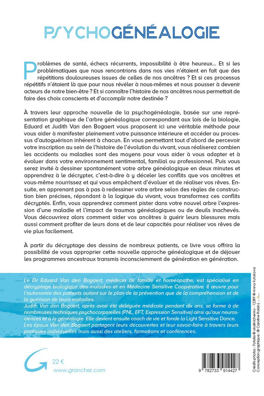 Problèmes de santé, échecs récurrents, impossibilité à être heureux… Et si les difficultés que nous rencontrions dans nos vies n’étaient en fait que des répétitions douloureuses issues de celles de nos ancêtres ? Et si ces processus répétitifs n’étaient là que pour nous pousser à devenir acteurs de notre bien-être ? À travers leur approche nouvelle de la psychogénéalogie, basée sur une représentation graphique de l’arbre généalogique correspondant aux lois de la biologie, Eduard et Judith Van den Bogaert vous proposent ici une méthode originale qui vous aidera à manifester pleinement votre puissance intérieure et à accéder au processus d’autoguérison inhérent à chacun. Dans un premier temps, vous serez invité à dessiner spontanément votre arbre généalogique en deux minutes et apprendrez à le décrypter, c’est-à-dire à y déceler les conflits que vos ancêtres et vous-même nourrissez et qui vous empêchent d’évoluer et de réaliser vos rêves. Ensuite, en apprenant pas à pas à redessiner votre arbre selon des règles de construction bien précises répondant à la logique du vivant, vous transformerez ces conflits décryptés. Enfin, vous apprendrez comment pister dans votre nouvel arbre l’expression d’une maladie et l’impact de traumas généalogiques ou de deuils inachevés et découvrirez alors comment aider vos ancêtres à guérir leurs blessures mais aussi comment profiter de leurs dons et de leurs capacités. À partir du décryptage des dessins de nombreux patients, ce livre vous permettra de vous approprier cette nouvelle approche généalogique et de déjouer les programmes ancestraux transmis inconsciemment de génération en génération.