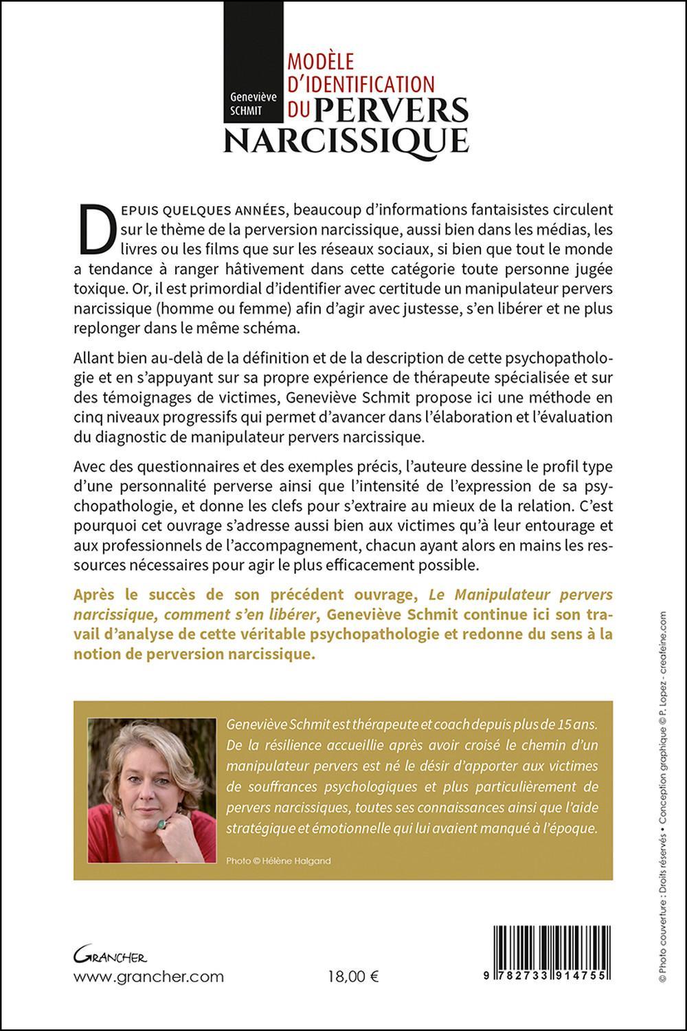 Beaucoup d’informations fantaisistes circulent sur le thème de la perversion narcissique, si bien que tout le monde a tendance à ranger hâtivement dans cette catégorie toute personne jugée toxique. Or, il est primordial d’identifier avec certitude un manipulateur pervers narcissique (homme ou femme) afin d'agir avec justesse, s'en libérer et ne plus replonger dans le même schéma. Dans cet ouvrage qui s’adresse aussi bien aux victimes qu'à leur entourage et aux professionnels de l'accompagnement, Geneviève Schmit propose une méthode en cinq niveaux progressifs qui permet d’avancer dans l’élaboration et l’évaluation du diagnostic de manipulateur pervers narcissique. Après le succès de son précédent ouvrage, ''Le Manipulateur pervers narcissique, comment s’en libérer'', Geneviève Schmit continue ici son travail d’analyse de cette véritable psychopathologie et redonne du sens à la notion de perversion narcissique.