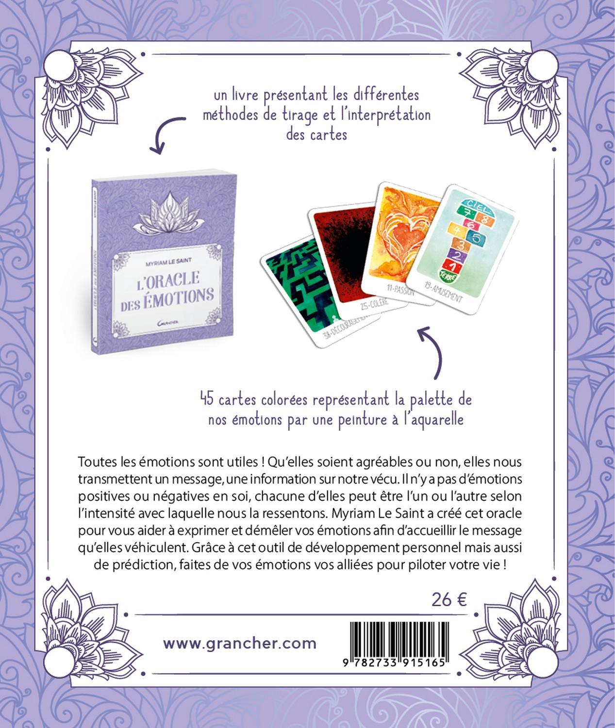 Toutes les émotions sont utiles ! Qu’elles soient agréables ou non, elles nous transmettent un message, une information sur notre vécu. Il n’y a pas d’émotions positives ou négatives en soi, chacune d’elles peut être l’un ou l’autre selon l’intensité avec laquelle nous la ressentons. Myriam Le Saint a créé cet oracle pour vous aider à exprimer et démêler vos émotions afin d’accueillir le message qu’elles véhiculent. Grâce à cet outil de développement personnel mais aussi de prédiction, faites de vos émotions vos alliées pour piloter votre vie !