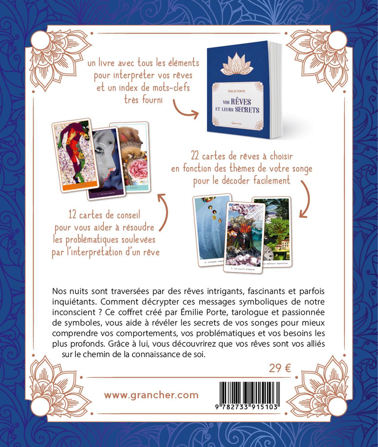Nos nuits sont traversées par des rêves intrigants, fascinants et parfois inquiétants. Certains nous réconfortent, d’autres nous hantent longtemps… Comment décrypter ces messages symboliques de notre inconscient ? Ce coffret, créé par Émilie Porte, vous aide à révéler les secrets de vos songes pour mieux comprendre vos comportements, vos problématiques et vos besoins les plus profonds. Grâce à lui, vous découvrirez que vos rêves sont vos alliés sur le chemin de la connaissance de soi.