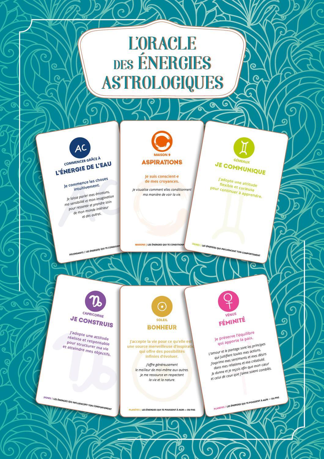 Tu te doutes que l’astrologie est un outil puissant de connaissance de soi mais mis à part ton signe astro – qui n’a plus de secret pour toi ! –, tu n’y connais pas grand-chose et tu rêves de découvrir ce que les planètes et les maisons ont à t’apprendre sur toi-même… ? Cet oracle, créé par l’astrologue Sophie Picaut, t’initiera à l’ensemble des énergies astrologiques, te permettra de comprendre les cycles universels qui rythment ta vie et t’aidera à prendre des décisions d’ordre sentimental, professionnel et spirituel aux moments opportuns. Grâce aux messages des astres, tu pourras mettre des mots justes sur ton passé et prendre conscience du présent afin de construire un futur qui te ressemble.