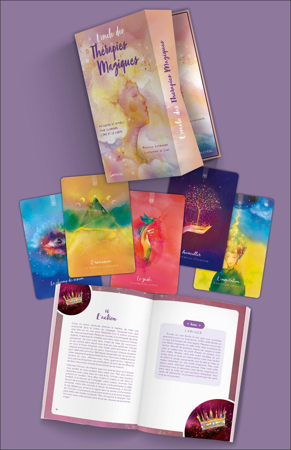 Cet oracle s'appuie sur différentes pratiques magiques, qu'elles soient énergétiques ou physiques, afin d'apporter soin, lumière et harmonie. Chaque carte présente une illustration vibratoire et renvoie à un message et à un rituel (incantation, respiration, yoga, mantra, méditation…). Mêlant des enseignements chamaniques, yogiques, magico-ésotériques ou encore psychocorporels, les rituels complètent le message des cartes et participent à l'accomplissement du processus de thérapie magique qui est alors total et vous permet d'avancer vers votre épanouissement personnel.