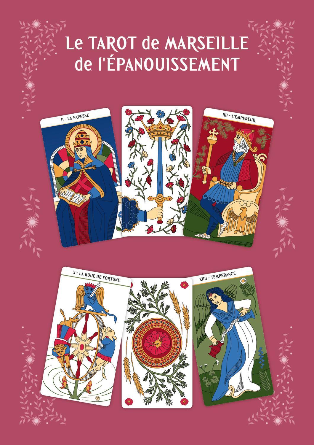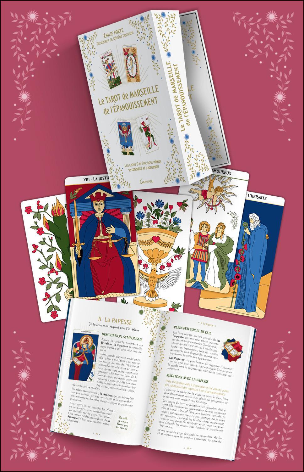 Dans ce coffret, Émilie Porte propose un regard neuf sur ces cartes familières. Vous découvrirez comment le Tarot de Marseille, en reflétant votre monde intérieur, vous enseigne le sens profond de votre vie. Exercices ludiques, méditations, élixirs floraux et tirages originaux vous permettront d’intégrer les cartes de façon vivante et intuitive. Leurs messages de sagesse vous guideront vers l’épanouissement personnel et spirituel. Et si le Tarot de Marseille avait encore beaucoup à nous apprendre ?