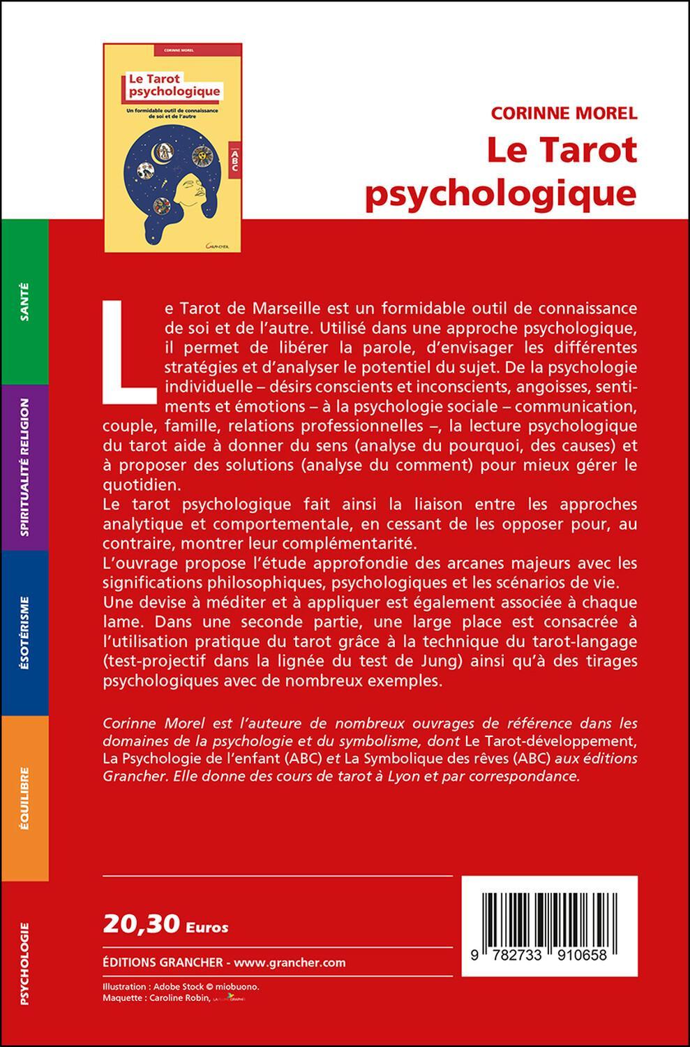 Le Tarot de Marseille est un formidable outil de connaissance de soi et de l’autre. Utilisé dans une approche psychologique, il permet de libérer la parole, d’envisager les différentes stratégies et d’analyser le potentiel du sujet. L’ouvrage propose l’étude approfondie des arcanes majeurs avec les significations philosophiques, psychologiques et les scénarios de vie. Une devise à méditer et à appliquer est également associée à chaque lame. Broché - 14 x 21,5 - 275 pages