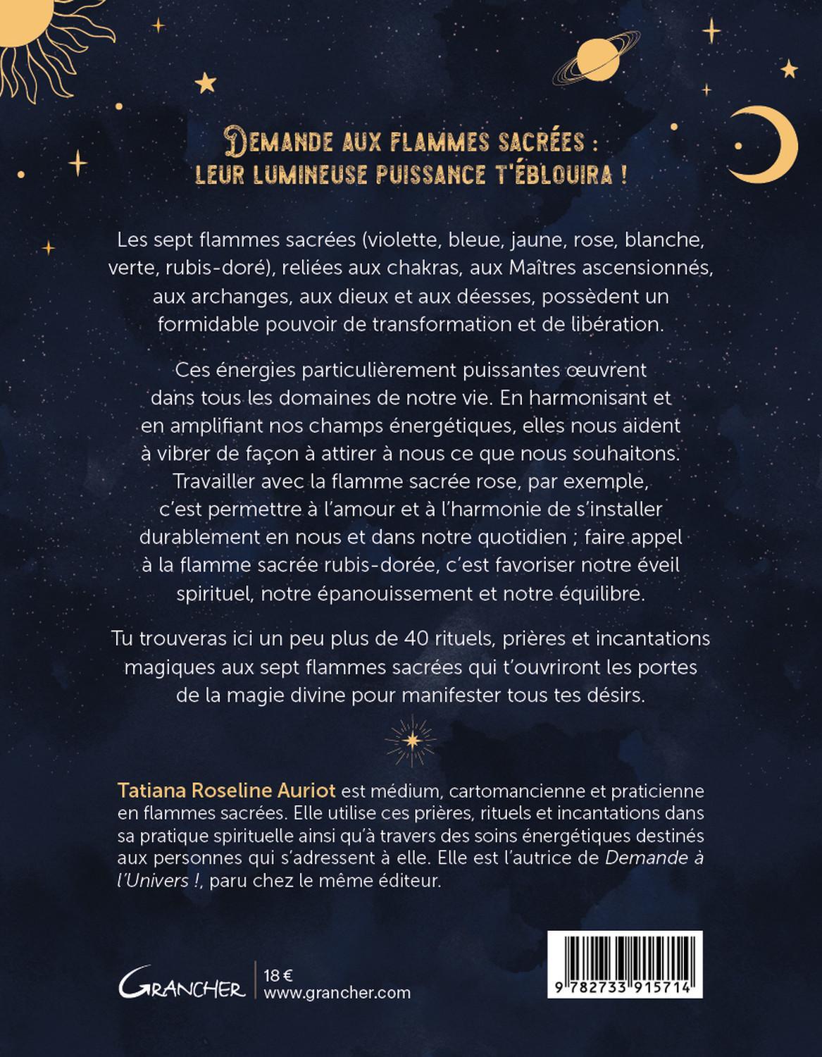 Les sept flammes sacrées (violette, bleue, jaune, rose, blanche, verte, rubis-doré), reliées aux chakras, aux Maîtres ascensionnés, aux archanges, aux dieux et aux déesses, possèdent un formidable pouvoir de transformation et de libération. Ces énergies particulièrement puissantes œuvrent dans tous les domaines de notre vie. En harmonisant et en amplifiant nos champs énergétiques, elles nous aident à vibrer de façon à attirer à nous ce que nous souhaitons. Travailler avec la flamme sacrée rose, par exemple, c’est permettre à l’amour et à l’harmonie de s’installer durablement en nous et dans notre quotidien ; faire appel à la flamme sacrée rubis-dorée, c’est favoriser notre éveil spirituel, notre épanouissement et notre équilibre. Tu trouveras ici un peu plus de 40 rituels, prières et incantations magiques aux sept flammes sacrées qui t’ouvriront les portes de la magie divine pour manifester tous tes désirs.