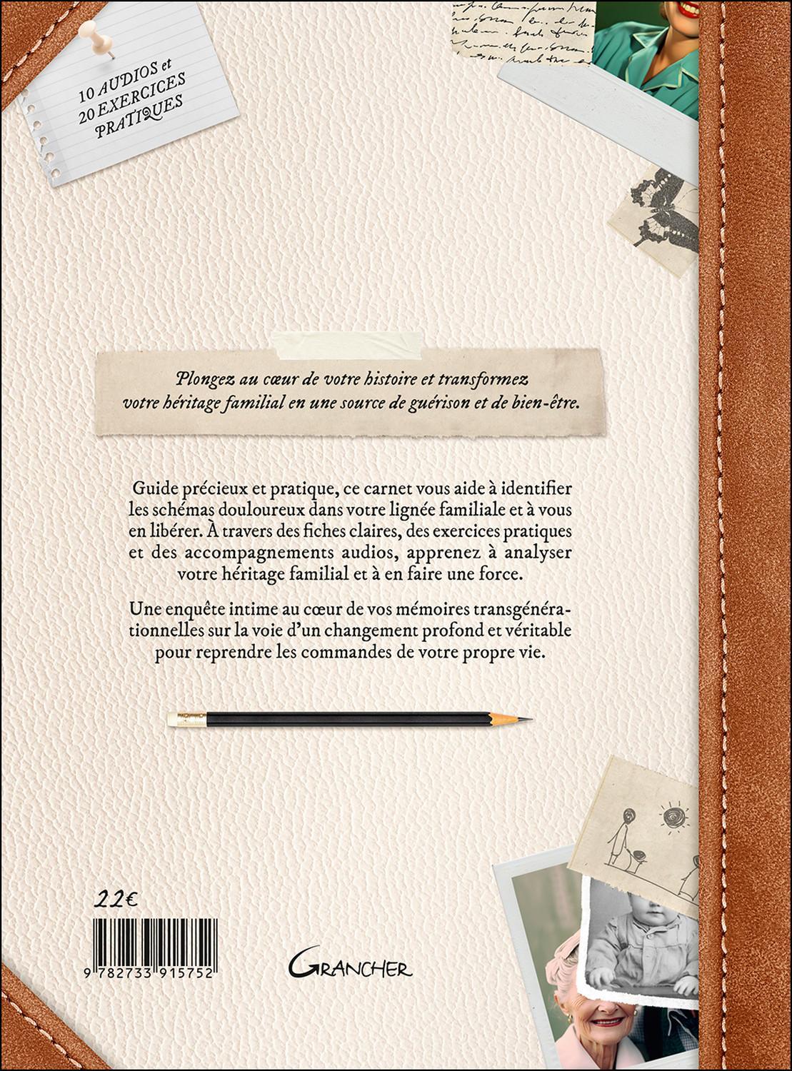Plongez au cœur de votre histoire et transformez votre héritage familial en une source de guérison et de bien-être. Guide précieux et pratique, ce carnet vous aide à identifier les schémas douloureux dans votre lignée familiale et à vous en libérer. À travers des fiches claires, des exercices pratiques et des accompagnements audios, apprenez à analyser votre héritage familial et à en faire une force. Une enquête intime au cœur de vos mémoires transgénérationnelles sur la voie d’un changement profond et véritable pour reprendre les commandes de votre propre vie.