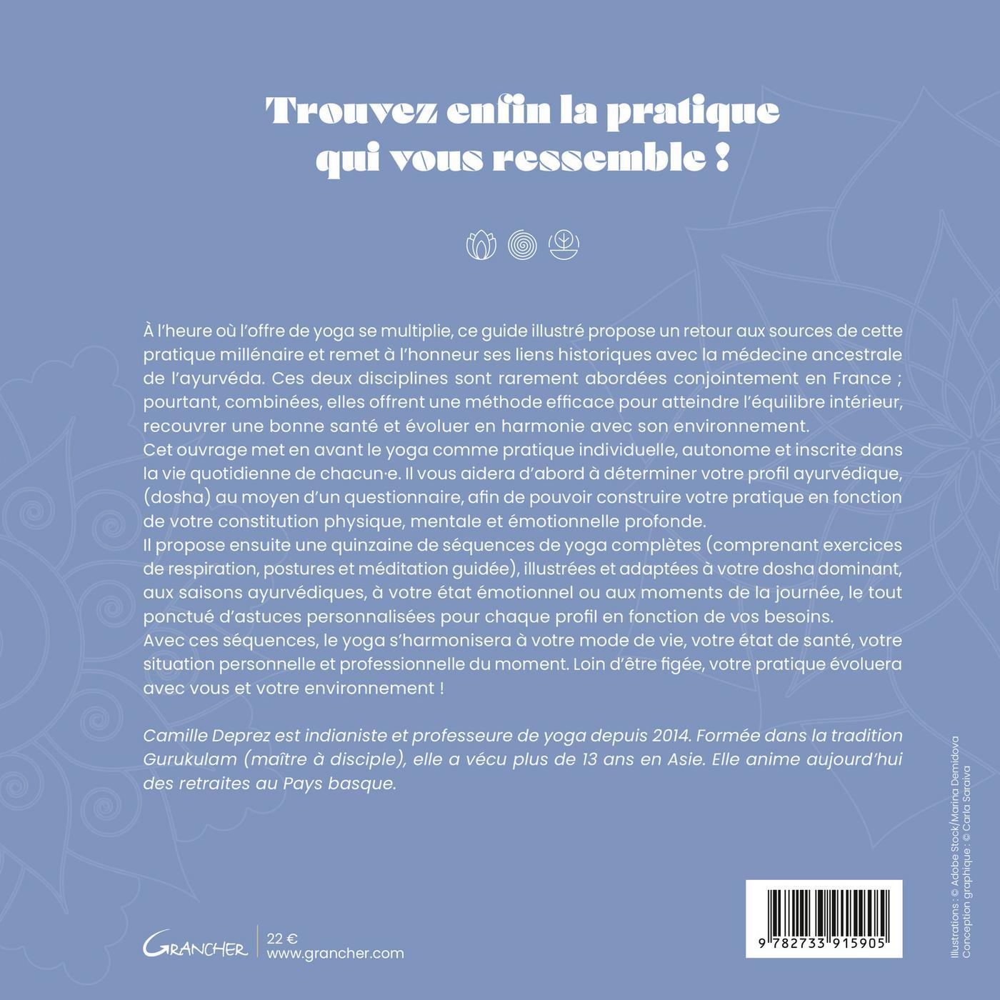À l’heure où l’offre de yoga se multiplie, ce guide illustré propose un retour aux sources de cette pratique millénaire et remet à l’honneur ses liens historiques avec la médecine ancestrale de l’ayurvéda. Ces deux disciplines sont rarement abordées conjointement en France ; pourtant, combinées, elles offrent une méthode efficace pour atteindre l’équilibre intérieur, recouvrer une bonne santé et évoluer en harmonie avec son environnement. Construit autour d’une pratique individuelle, ce livre s’adapte au profil ayurvédique du lecteur et propose fiches et exercices illustrés en fonction de son quotidien, de sa personnalité, de son état de santé et des périodes de l’année. Le lecteur y trouvera également des conseils et recettes personnalisés.