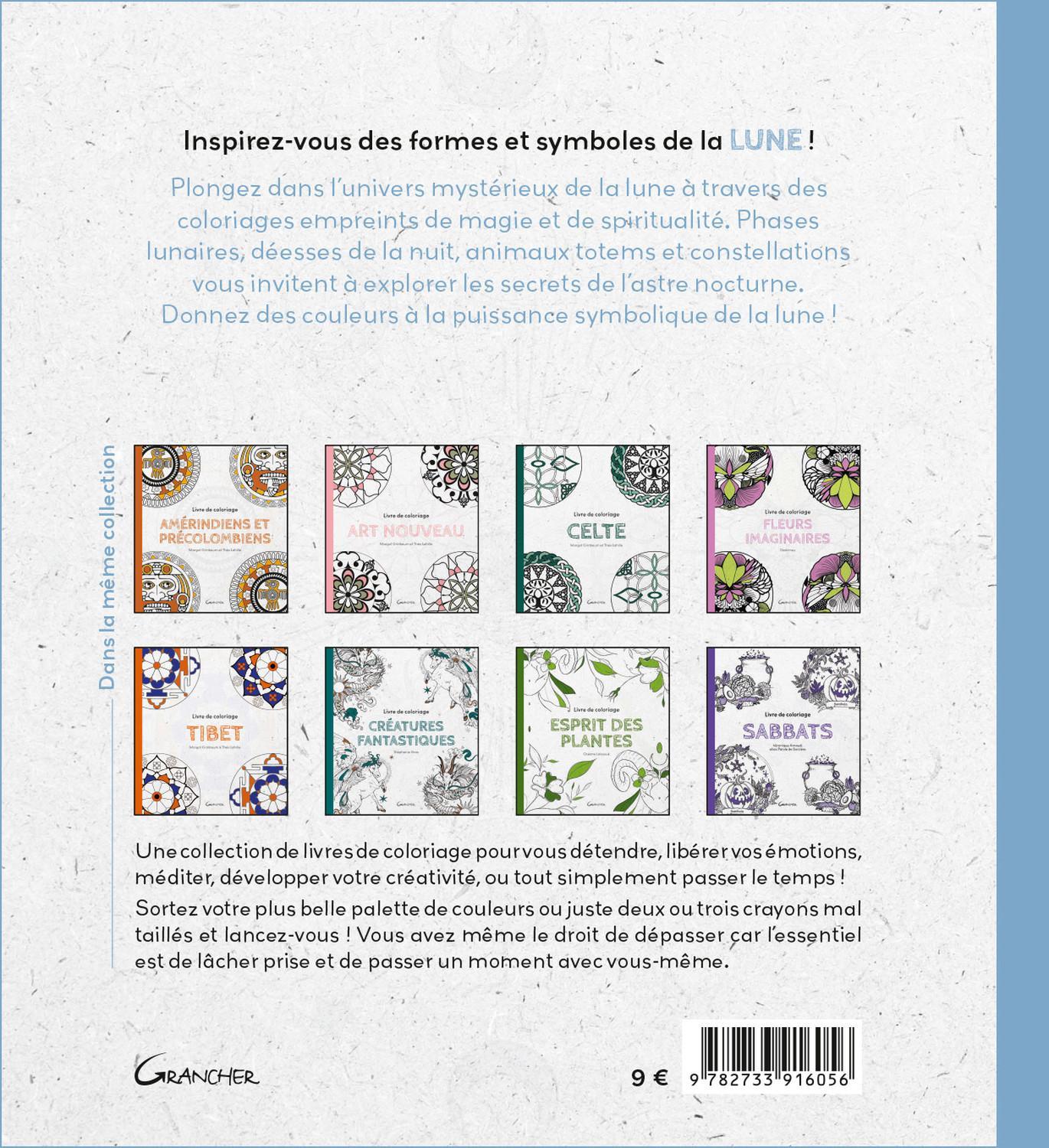 Inspirez-vous des formes et symboles de la lune ! Plongez dans l’univers mystérieux de la lune à travers des coloriages empreints de magie et de spiritualité. Phases lunaires, déesses de la nuit, animaux totems et constellations vous invitent à explorer les secrets de l’astre nocturne. Donnez des couleurs à la puissance symbolique de la lune ! Une collection de livres de coloriage pour vous détendre, libérer vos émotions, méditer, développer votre créativité, ou tout simplement passer le temps ! Sortez votre plus belle palette de couleurs ou juste deux ou trois crayons mal taillés et lancez-vous ! Vous avez même le droit de dépasser car l’essentiel est de lâcher prise et de passer un moment avec vous-même.