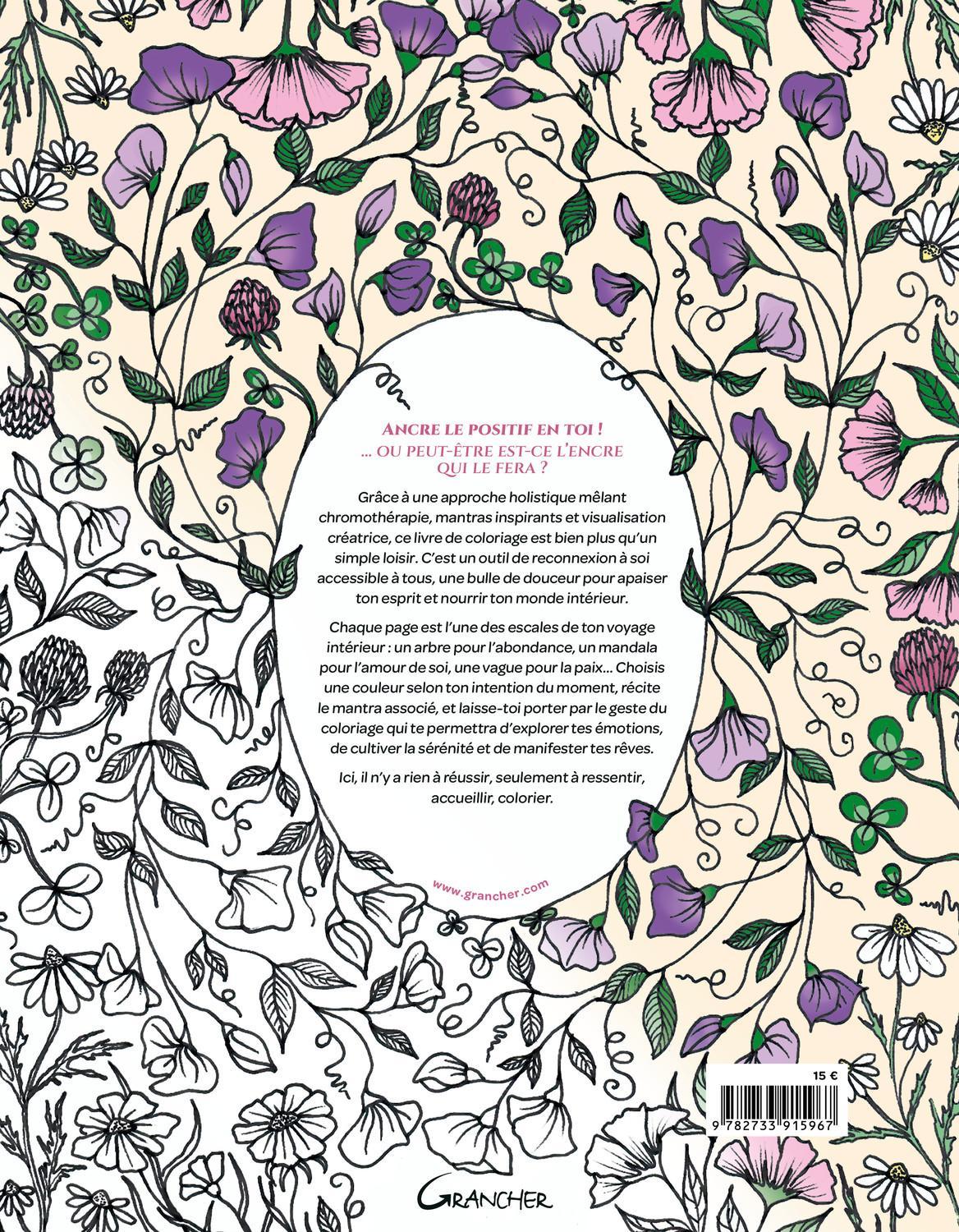 Ancre le positif en toi ! … ou peut-être est-ce l’encre qui le fera ? Grâce à une approche holistique mêlant chromothérapie, mantras inspirants et visualisation créatrice, ce livre de coloriage est bien plus qu’un simple loisir. C’est un outil de reconnexion à soi accessible à tous, une bulle de douceur pour apaiser ton esprit et nourrir ton monde intérieur. Chaque page est l’une des escales de ton voyage intérieur : un arbre pour l’abondance, un mandala pour l’amour de soi, une vague pour la paix… Choisis une couleur selon ton intention du moment, récite le mantra associé, et laisse-toi porter par le geste du coloriage qui te permettra d’explorer tes émotions, de cultiver la sérénité et de manifester tes rêves. Ici, il n’y a rien à réussir, seulement à ressentir, accueillir, colorier.