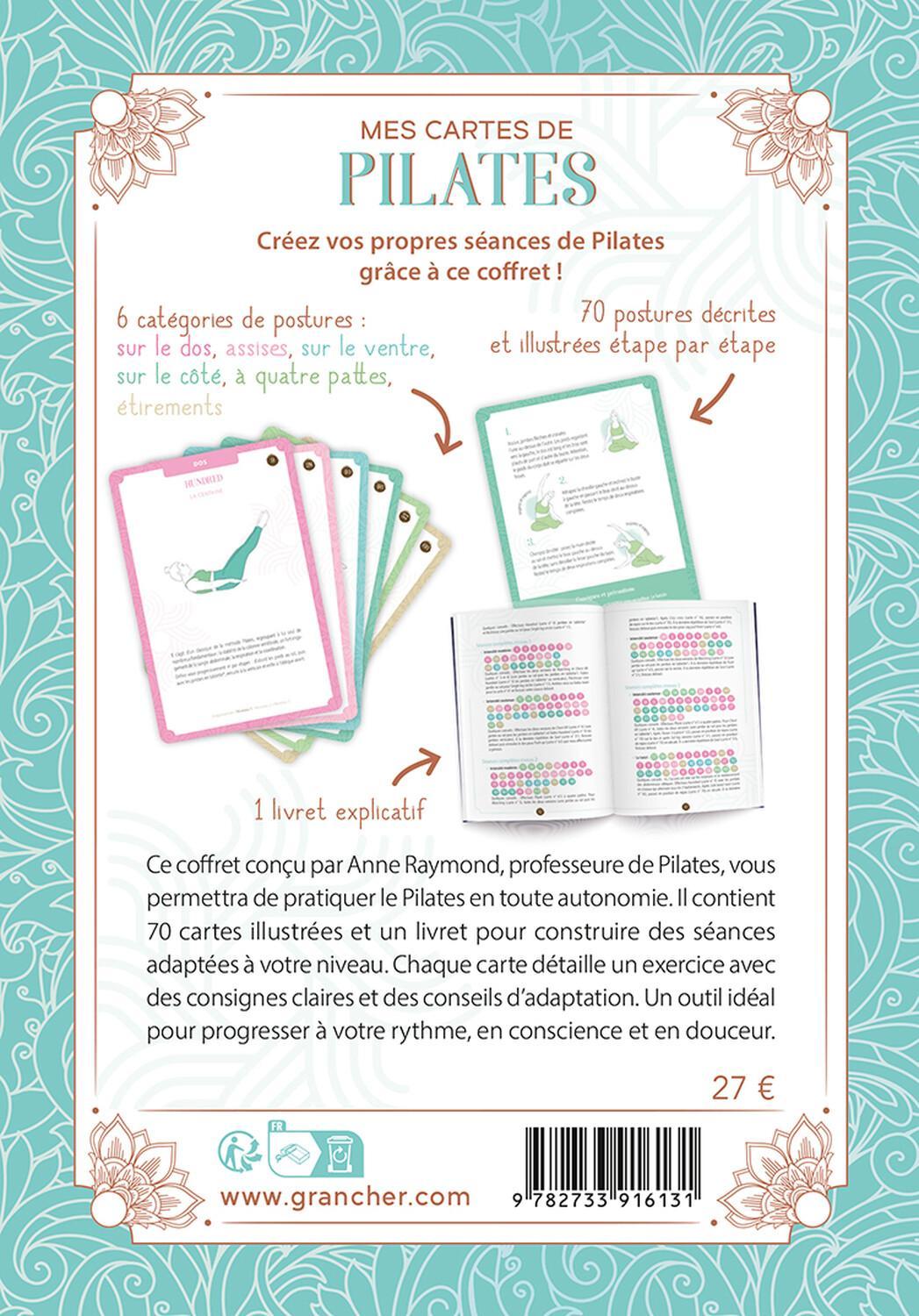 Ce coffret conçu par Anne Raymond, professeure de Pilates, vous permettra de pratiquer le Pilates en toute autonomie. Il contient 70 cartes illustrées et un livret pour construire des séances adaptées à votre niveau. Chaque carte détaille un exercice avec des consignes claires et des conseils d’adaptation. Un outil idéal pour progresser à votre rythme, en conscience et en douceur.