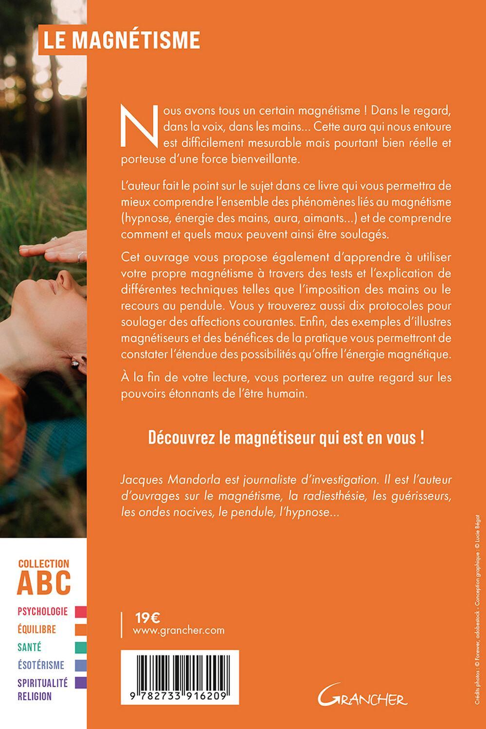 Nous avons tous un certain magnétisme ! Dans le regard, dans la voix, dans les mains… Cette aura qui nous entoure est difficilement mesurable mais pourtant bien réelle et porteuse d’une force bienveillante. L’auteur fait le point sur le sujet dans ce livre qui vous permettra de mieux comprendre l’ensemble des phénomènes liés au magnétisme (hypnose, énergie des mains, aura, aimants…) et de comprendre comment et quels maux peuvent ainsi être soulagés. Cet ouvrage vous propose également d’apprendre à utiliser votre propre magnétisme à travers des tests et l’explication de différentes techniques telles que l’imposition des mains ou le recours au pendule. Vous y trouverez aussi dix protocoles pour soulager des affections courantes. Enfin, des exemples d’illustres magnétiseurs et des bénéfices de la pratique vous permettront de constater l’étendue des possibilités qu’offre l’énergie magnétique. À la fin de votre lecture, vous porterez un autre regard sur les pouvoirs étonnants de l’être humain. Découvrez le magnétiseur qui est en vous !